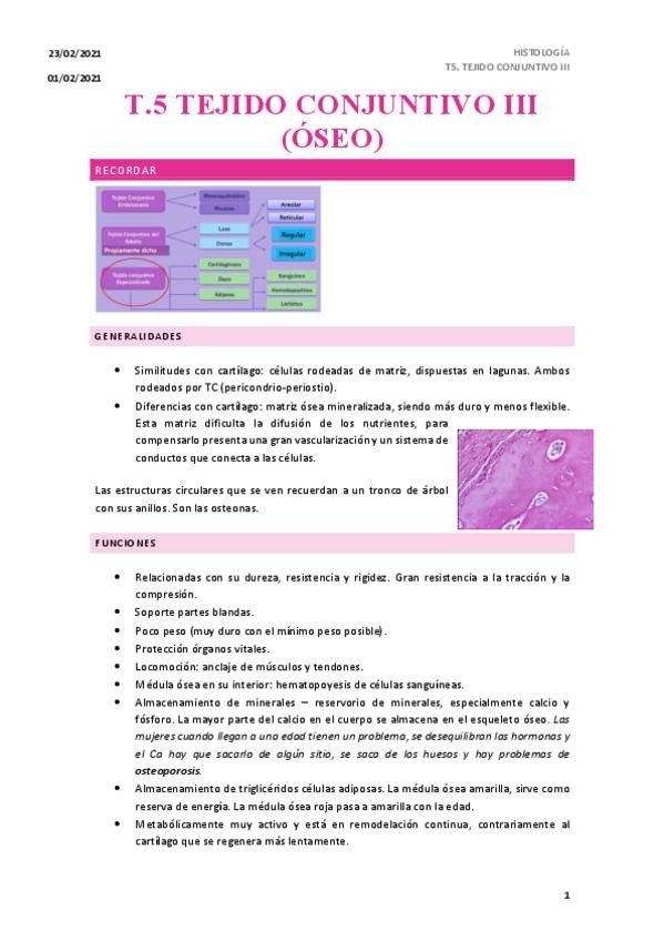 He publicado nuevos apuntes de 1º HISTOLOGIA I (HISTOLOGIA GENERAL): T5.-OSEO.pdf
