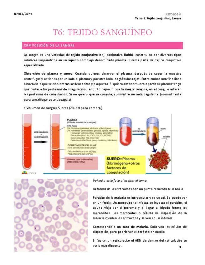 He publicado nuevos apuntes de 1º HISTOLOGIA I (HISTOLOGIA GENERAL): T6.-SANGRE.pdf