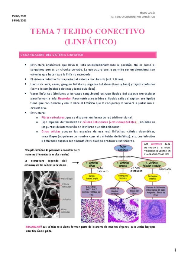 He publicado nuevos apuntes de 1º HISTOLOGIA I (HISTOLOGIA GENERAL): T7.-LINFATICO.pdf