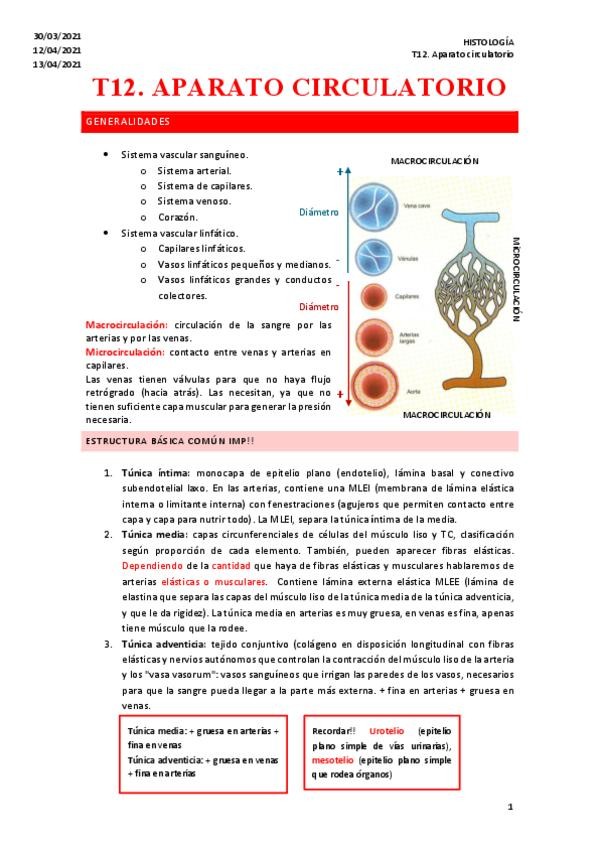 He publicado nuevos apuntes de 1º HISTOLOGIA I (HISTOLOGIA GENERAL): Tema-12-aparato-circulatorio.pdf