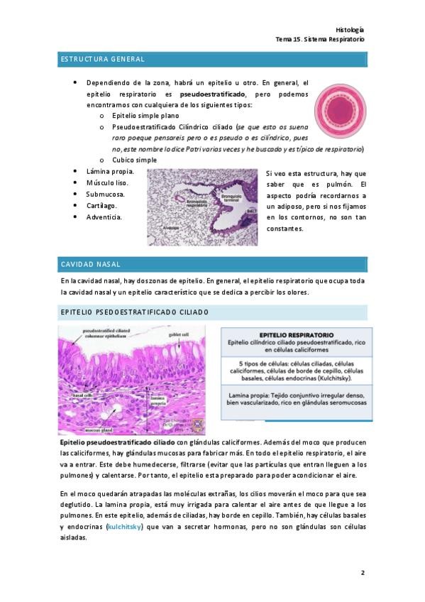 He publicado nuevos apuntes de 1º HISTOLOGIA I (HISTOLOGIA GENERAL): TEMA-15.-RESPIRATORIO.pdf
