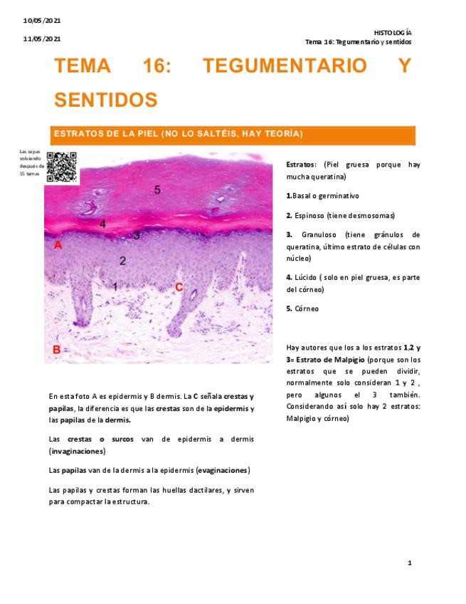 He publicado nuevos apuntes de 1º HISTOLOGIA I (HISTOLOGIA GENERAL): tema-16-tegumentario-y-organos-de-los-sentidos.pdf
