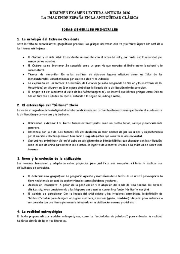 Resúmenes libro de lectura La imagen de España en la antigüedad clásica