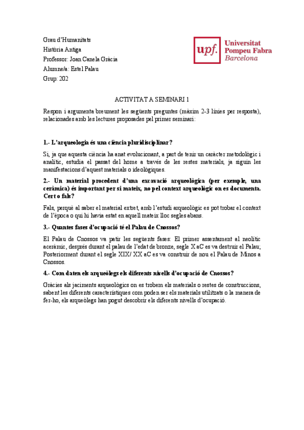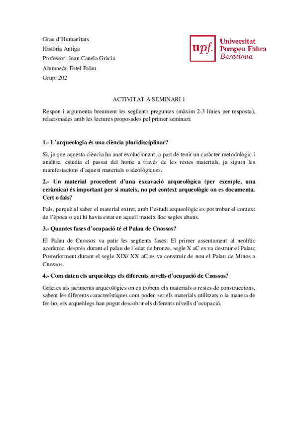 Examen Historia Antigua. 1r Humanitats UPF. Prof: Adriano Orsingher.