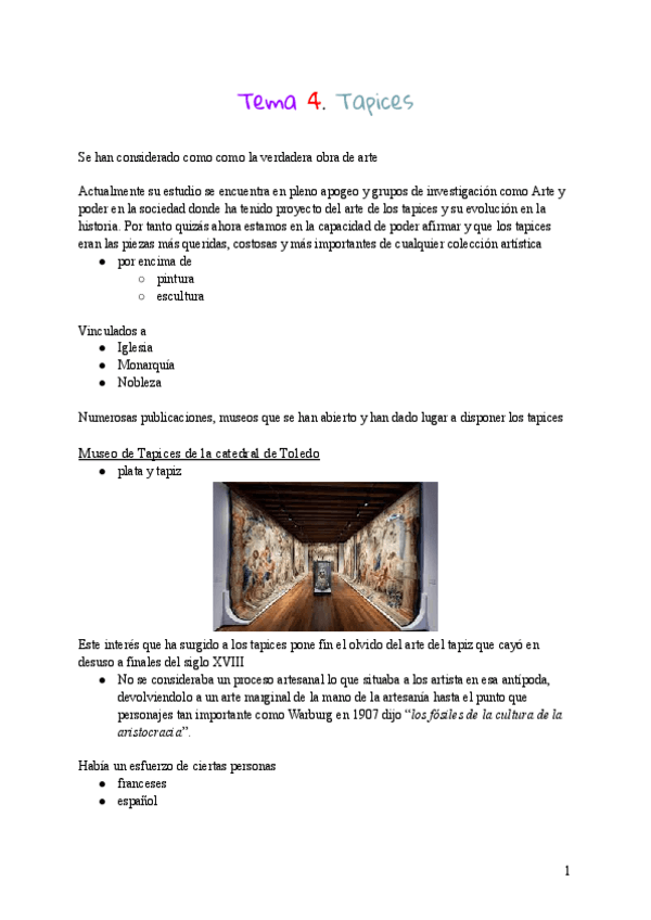 He publicado nuevos apuntes de 4º Historia, Catalogación y Musealización de las Artes Decorativas: Tema-4-El-arte-del-tapiz.pdf