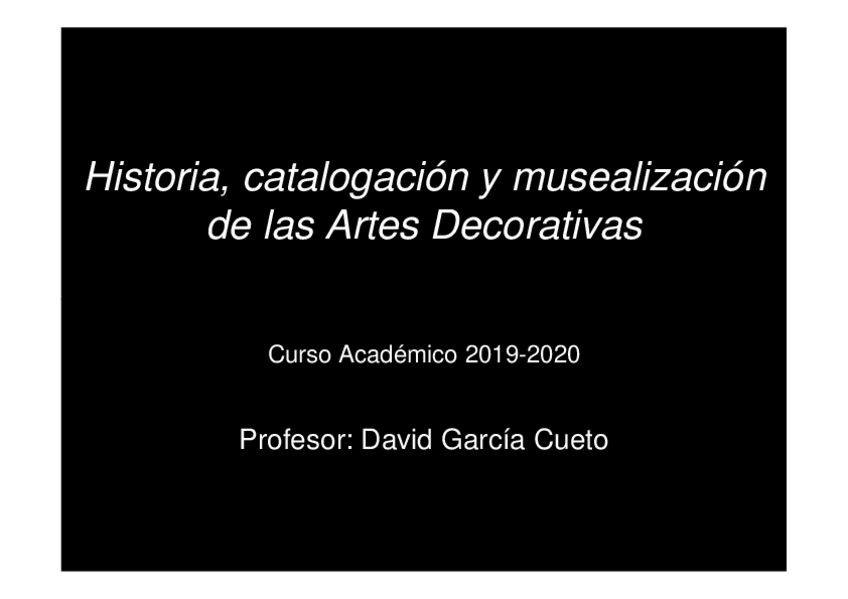 He publicado nuevos apuntes de 4º Historia, Catalogación y Musealización de las Artes Decorativas: PRESENTACION-DECORATIVAS.pdf