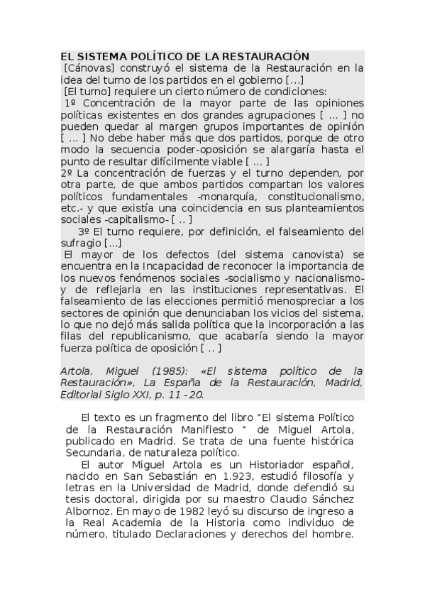 He publicado nuevos apuntes de 3º Historia Contemporánea de España: EL-SISTEMA-POLITICO-DE-LA-RESTAURACION-Miguel-Artola.docx