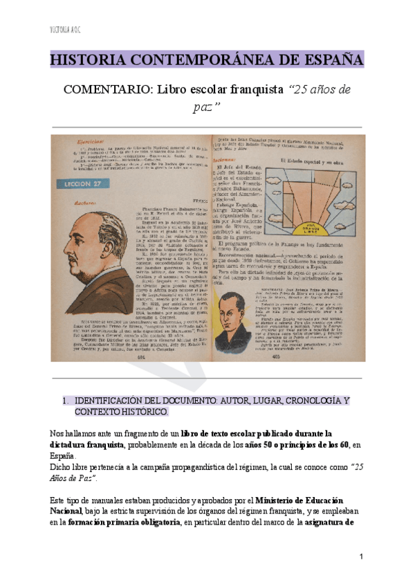 TEXTO: LIBRO ESCOLAR FRANQUISTA “25 años de paz”