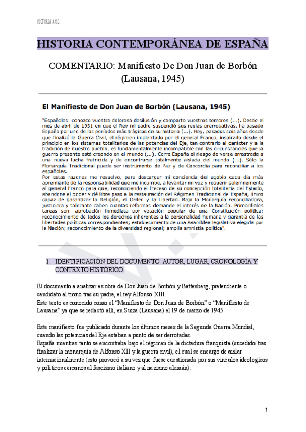 TEXTO: MANIFIESTO DE DON JUAN DE BORBÓN (Lausana, 1945)