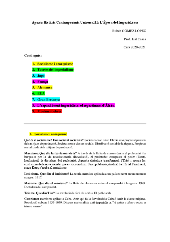 He publicado nuevos apuntes de 3º Història Contemporània Universal II, l'Època de l'Imperialisme: Resum-examen-2.pdf