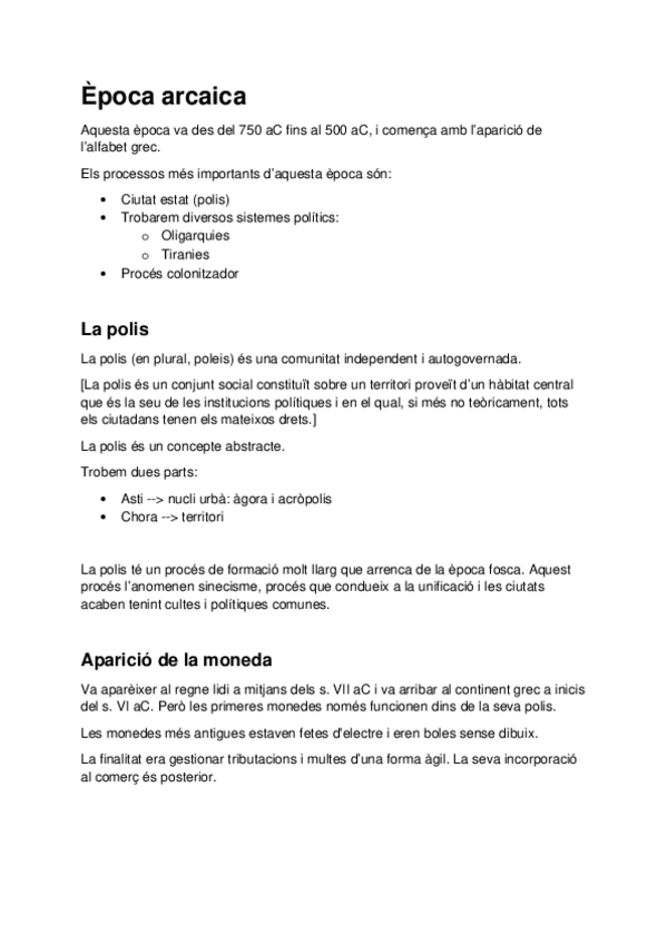 He publicado nuevos apuntes de 1º Historia, Cultura y Sociedad en Época Antigua y Medieval: Grècia durant l'època arcaica (1).docx
