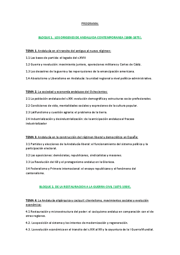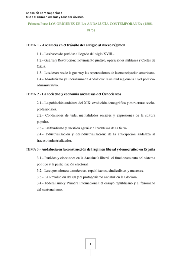 Temario Hª Andalucía Contemporánea