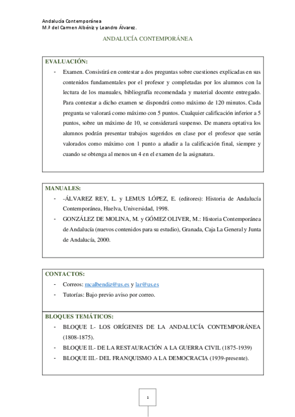 Temario Andalucía Contemporánea