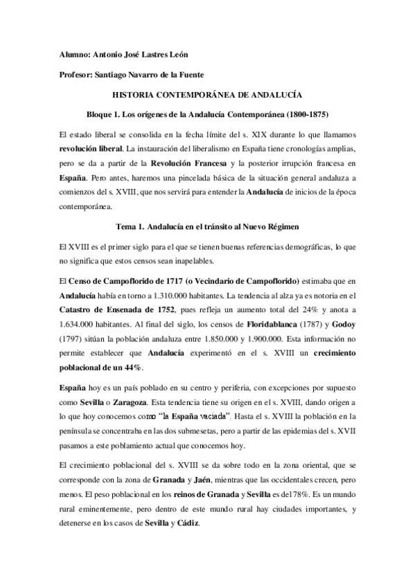 Apuntes de Historia de Andalucía Contemporánea