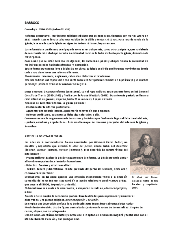Barroco para Historia del arte y del Diseño (NO INCLUYE EPOCA DORADA DE PAISES BAJOS)