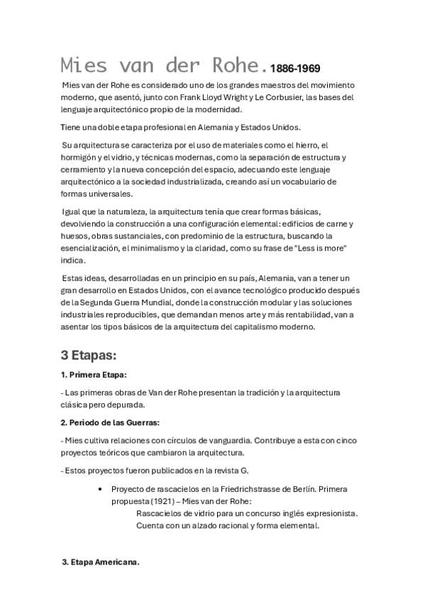 Apuntes tema Mies Van Der Rohe Primero Diseño Arquitectónico de Interiores