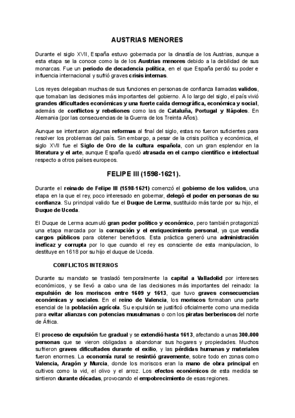contiene temas que entran en la PAU 2026. La teoria de los austrias menores bien explicado.