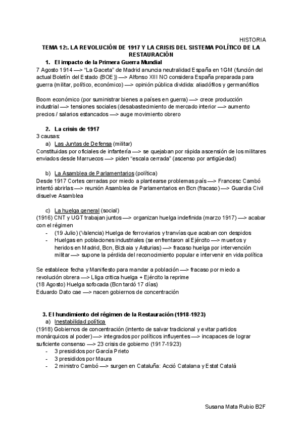 Epígrafes de los bloques 11.3,11.4 , 12 y 13 de Historia de España de 2do de Bachillerato. Con estos apuntes tuve una media de 10 en Bachillerato y saqué un 9.5 en PAU.