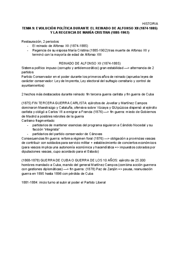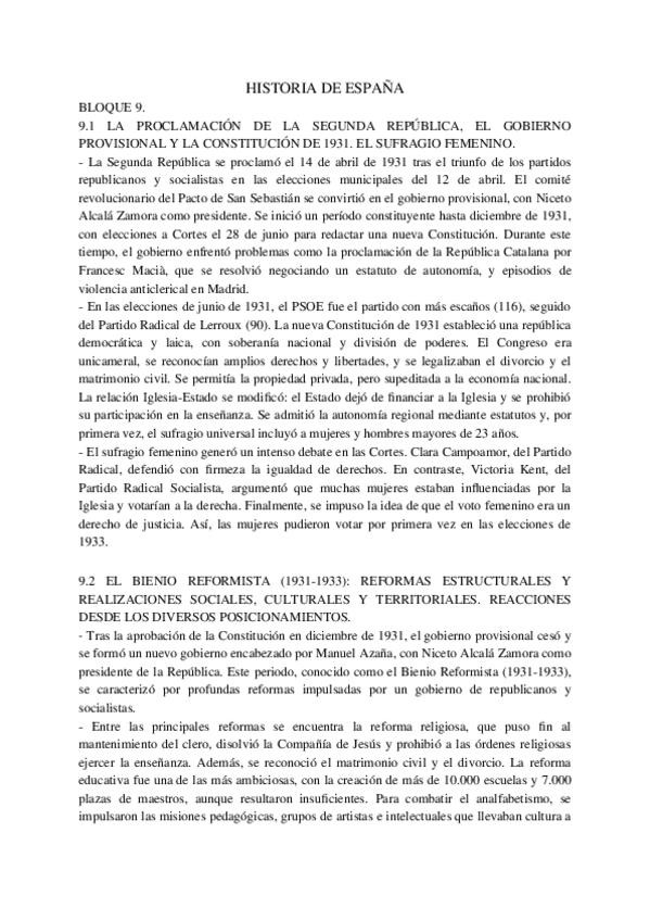 Epígrafes de los bloques 9, 10 y 11 de Historia de España de 2do de Bachillerato. Con estos apuntes tuve una media de 10 en Bachillerato y saqué un 9.5 en PAU.