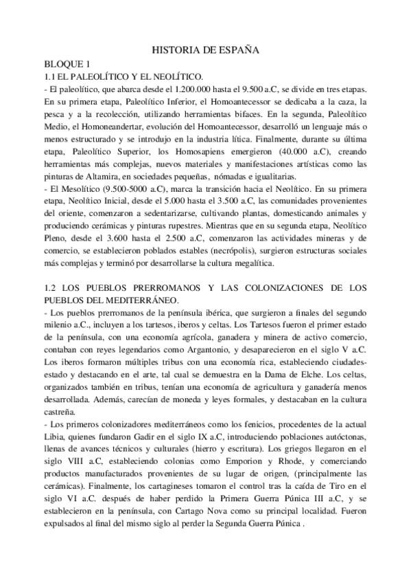Epígrafes de los bloques 1 y 2 de Historia de España de 2do de Bachillerato. Con estos apuntes tuve una media de 10 en Bachillerato y saqué un 9.5 en PAU.