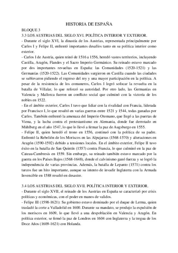 Epígrafes de los bloques 3 y 4 de Historia de España de 2do de Bachillerato. Con estos apuntes tuve una media de 10 en Bachillerato y saqué un 9.5 en PAU.