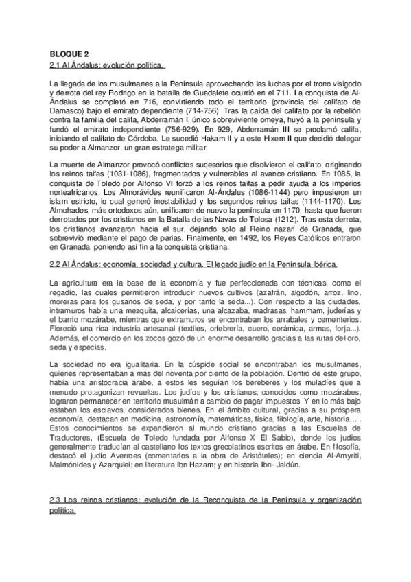 Primer bloque de Historia de España Selectividad Andalucía