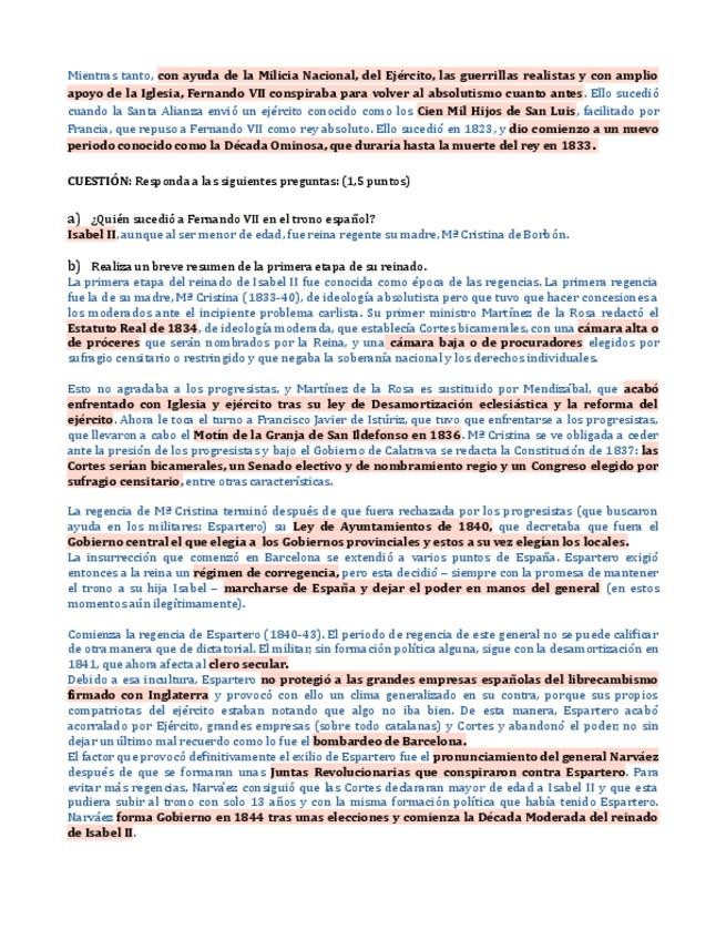 CreadoresTema 4 Historia de España, Reinado de Isabel II, 2Bachiller-PAU