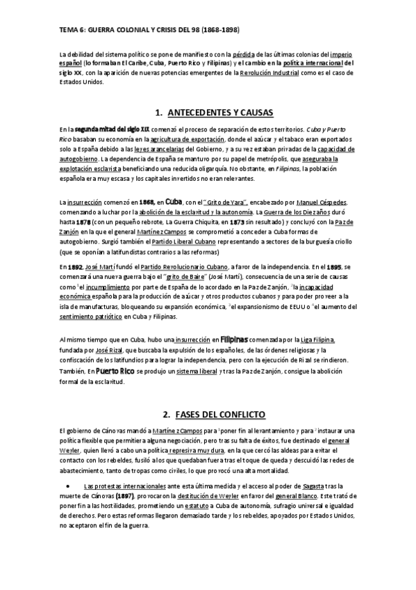 TEMA 6: GUERRA COLONIAL (1868-1898)