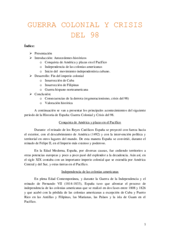 B.7B Guerra Colonial y Crisis del 98