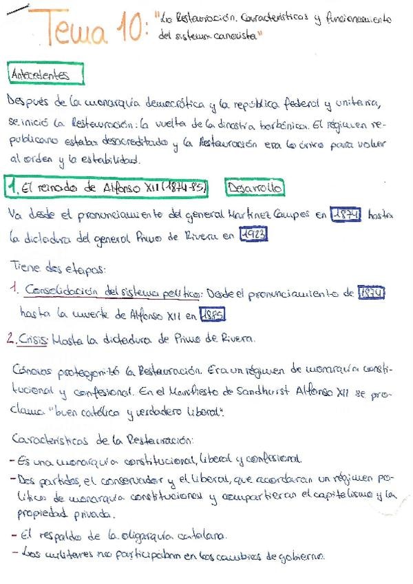 Resumen todos los temas siglos XIX y XX