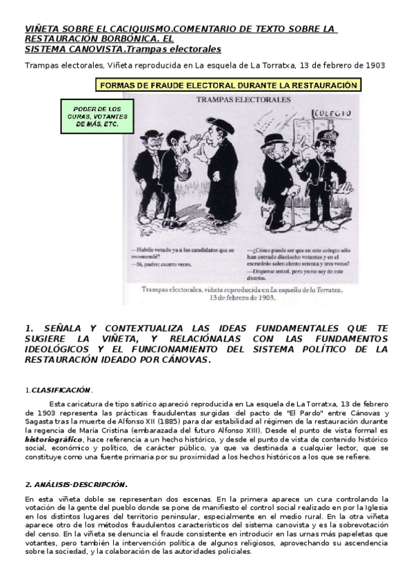 COMENTARIO RESUELTO VIÑETA CACIQUISMO (La Restauración)