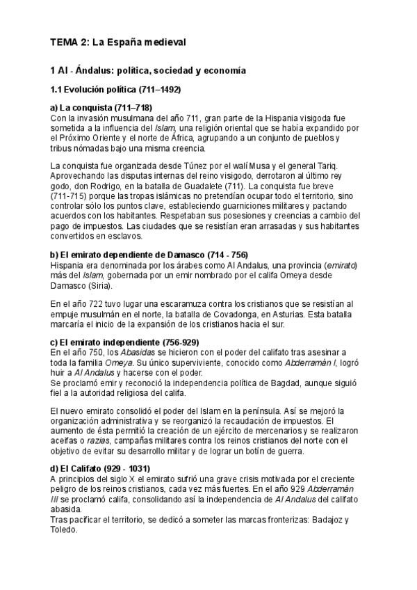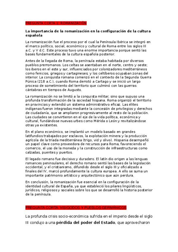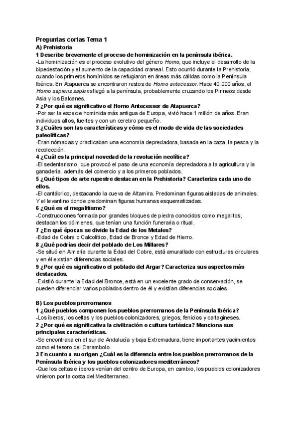 Preguntas cortas de Historia de España. TEMA 1: De la prehistoria al final del reino visigodo y TEMA 2: La España medieval