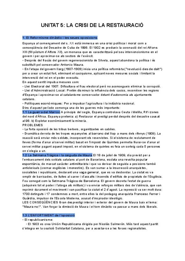 He publicado nuevos apuntes de 2º Historia de España: Unitat-5-La-crisi-de-la-Restauracio.pdf