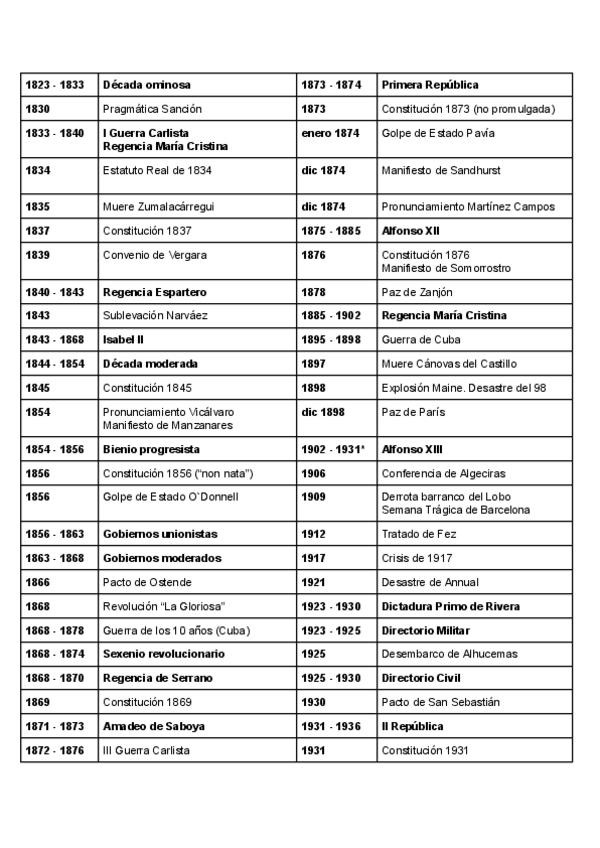 Crise Da Restauración, Ditadura de Primo de Rivera, Establecemento da II República, Franquismo, España Democrática,
