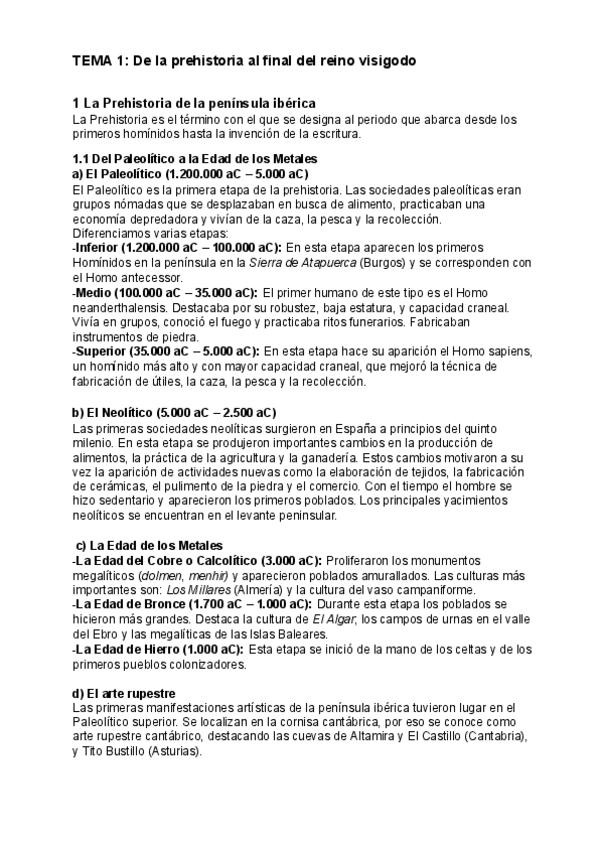 Apuntes de Historia de España. Tema 1: De la prehistoria al final del reino visigodo