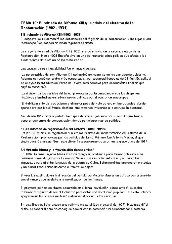 Apuntes de Historia de España. Tema 10: El reinado de Alfonso XIII y la crisis del sistema de la Restauración (1902 - 1931)