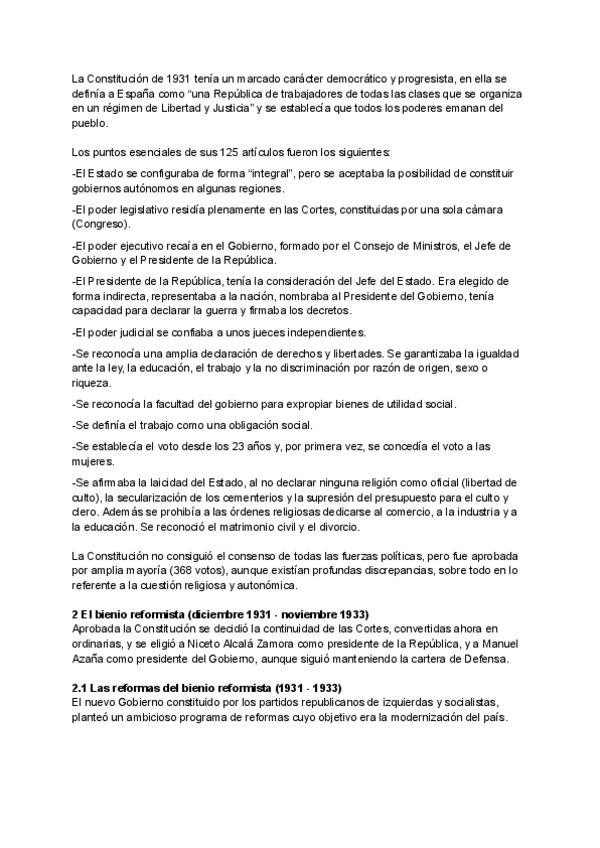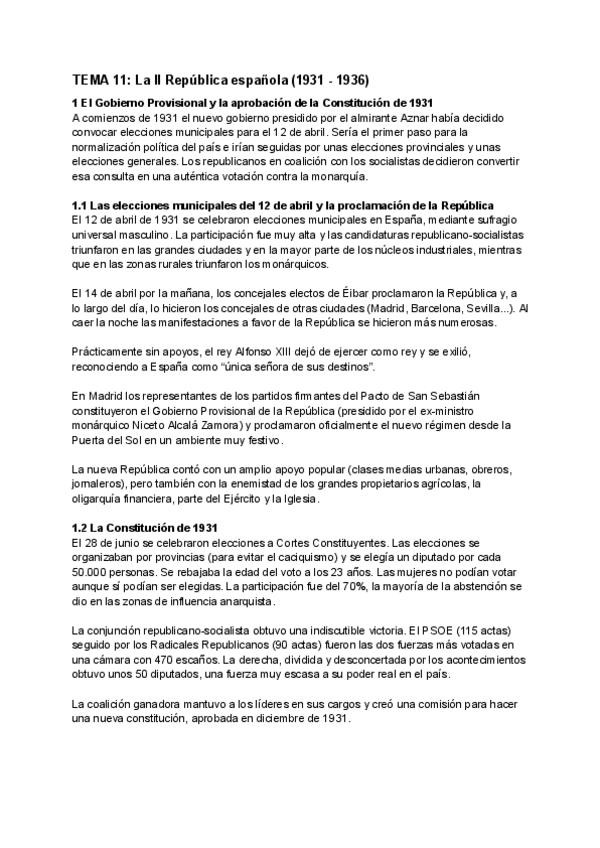 Apuntes de Historia de España. Tema 11: La II República española (1931 - 1936)