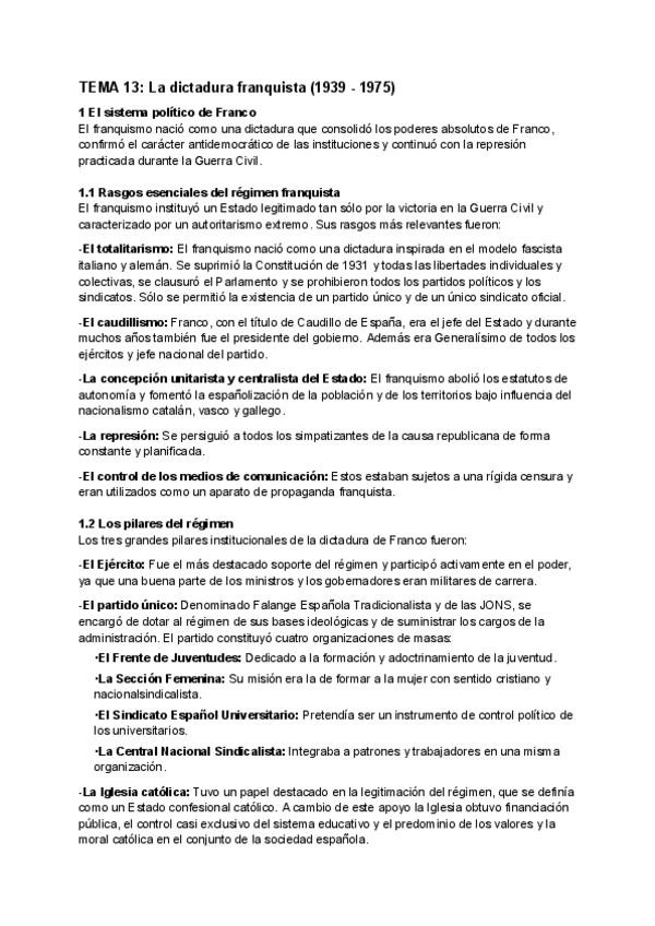 Apuntes de Historia de España. Tema 13: La dictadura franquista (1939 - 1975)