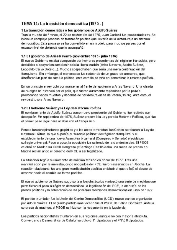 Apuntes de Historia de España. Tema 14: La transición democrática (1975 - )