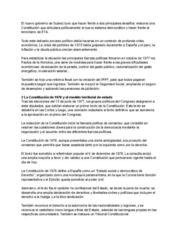 Apuntes del 3er trimestre de Historia de España, a partir del franquismo.