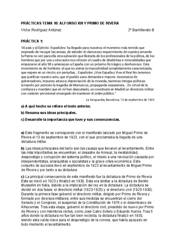 Ejercicios tipo selectividad de Historia de España. TEMA 10: El reinado de Alfonso XIII y la crisis del sistema de la Restauración (1902 - 1931)