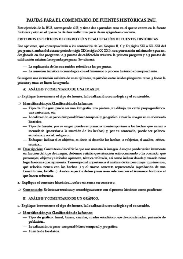 PAUTAS PARA EL COMENTARIO DE FUENTES HISTÓRICAS PAU.