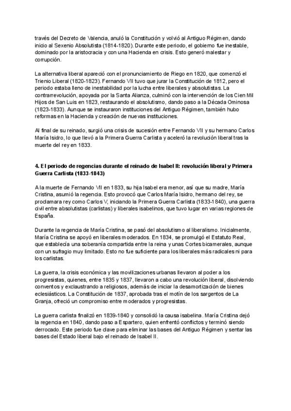 El período de regencias durante el reinado de Isabel II: revolución liberal y Primera Guerra Carlista (1833-1843). (epígrafe 4 selectividad)