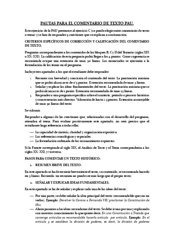 PAUTAS COMENTARIO DE TEXTO PAU, en mi perfil está el de fuente también.