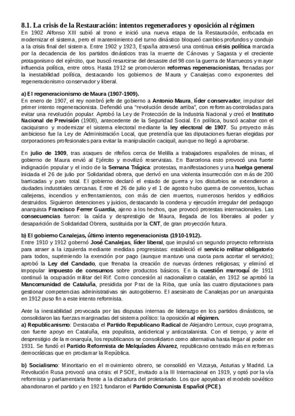 He publicado nuevos apuntes de 2º Historia de España: 8.1.-La-crisis-de-la-Restauracion-intentos-regeneradores-y-oposicion-al-regimen.pdf