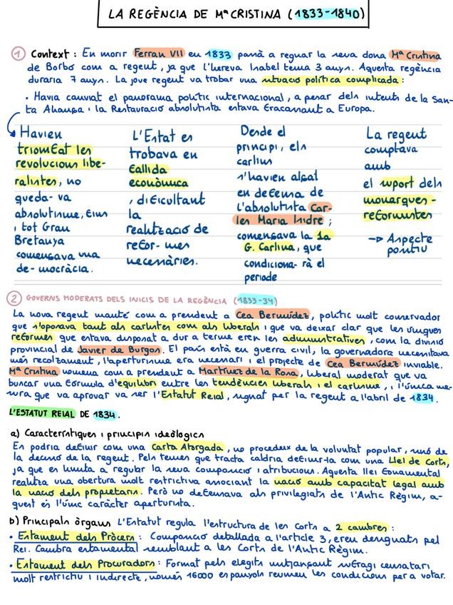 Apuntes resumidos con detalle del subtema de la época de regencias y la guerra carlista de historia de España de 2º de bachillerato