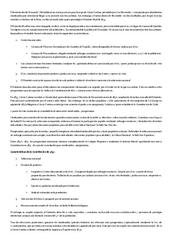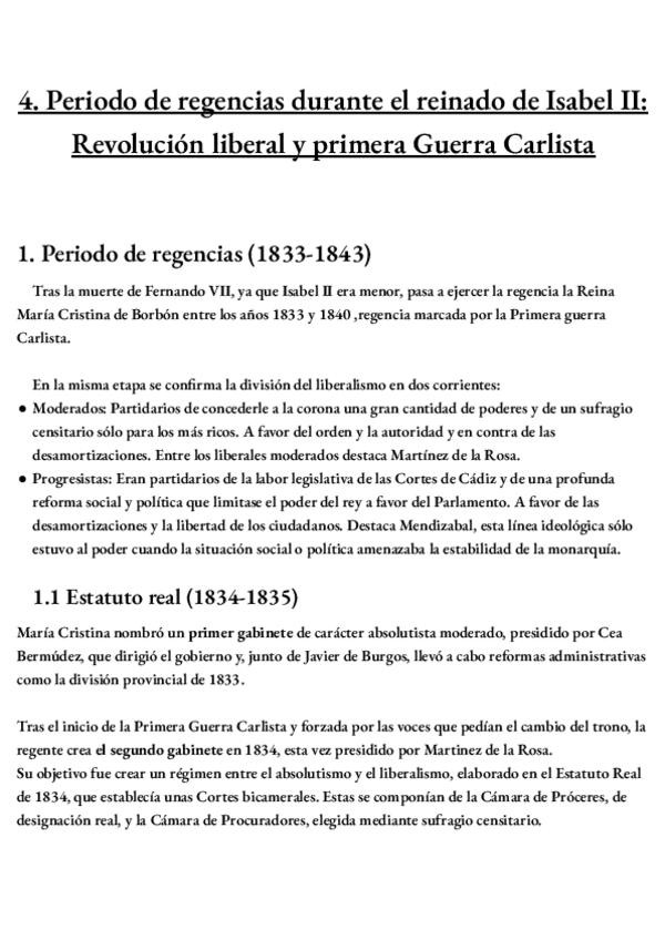 Resumen de la primera parte del bloque 6 de Historia de España: EL PERIODO DE REGENCIAS DURANTE EL REINADO DE ISABEL II: REVOLUCIÓN LIBERAL Y PRIMERA GUERRA CARLISTA (1833-1843)