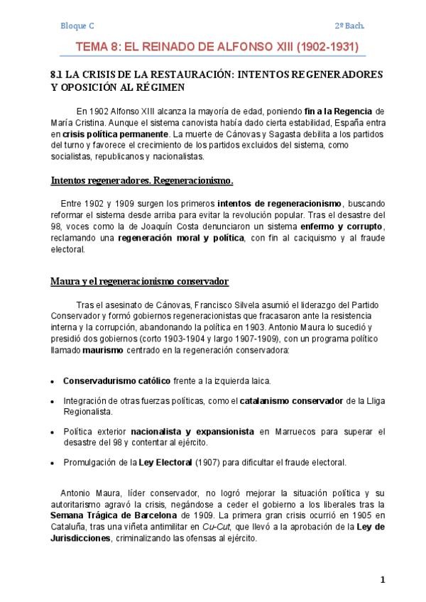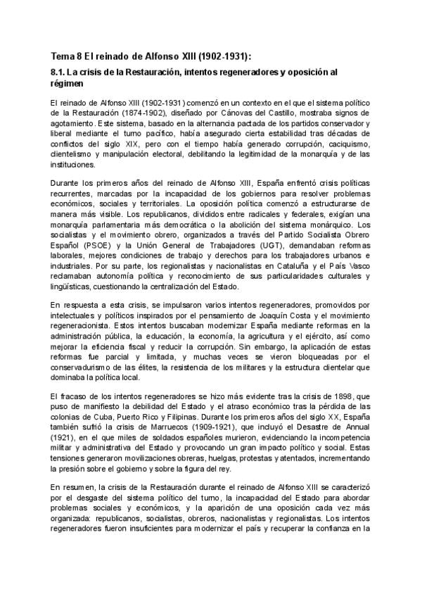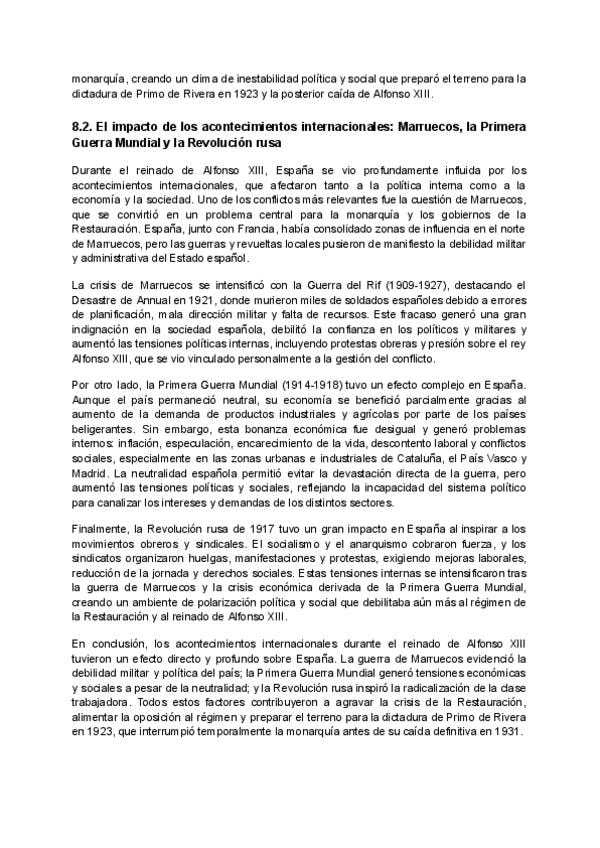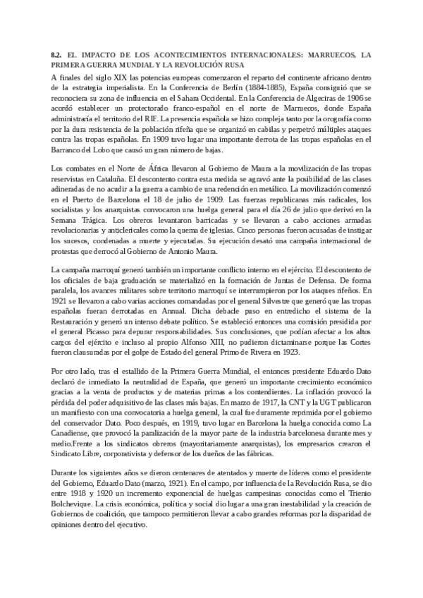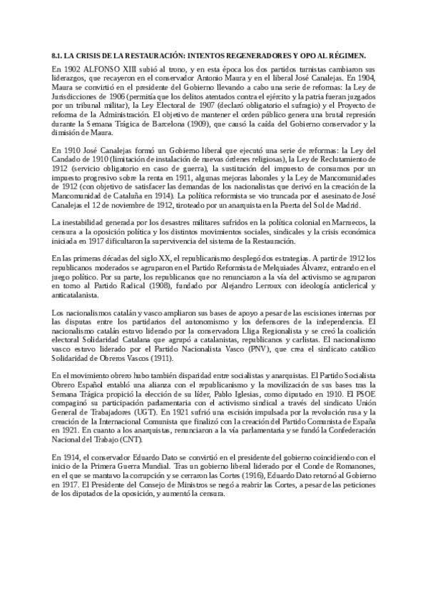 Bloque 8 historia, están genial los apuntes para SACAR UN 10!!! ***En el 8.3 se ha cortado la última frase y se ha quedado a medias. La frase que falta es: "Sin embargo, su gobierno ni continuó la dictadura ni llegó a restaurar la Constitución de 1876; p
