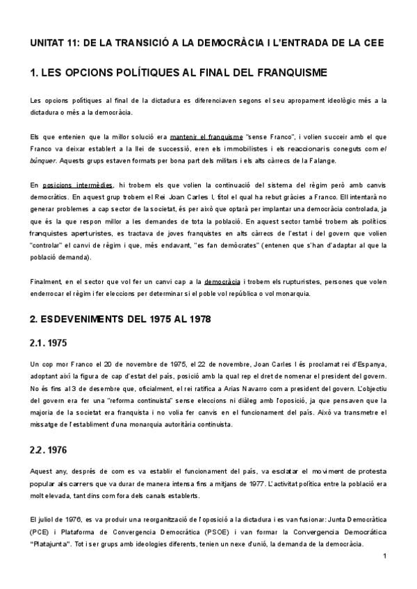 Apunts de la transició a la democràcia d’història d’Espanya.