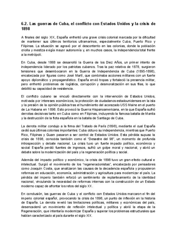 C. De la crisis del 98 al fin de la dictadura franquista. Temas 8 y 9. Historia de España.